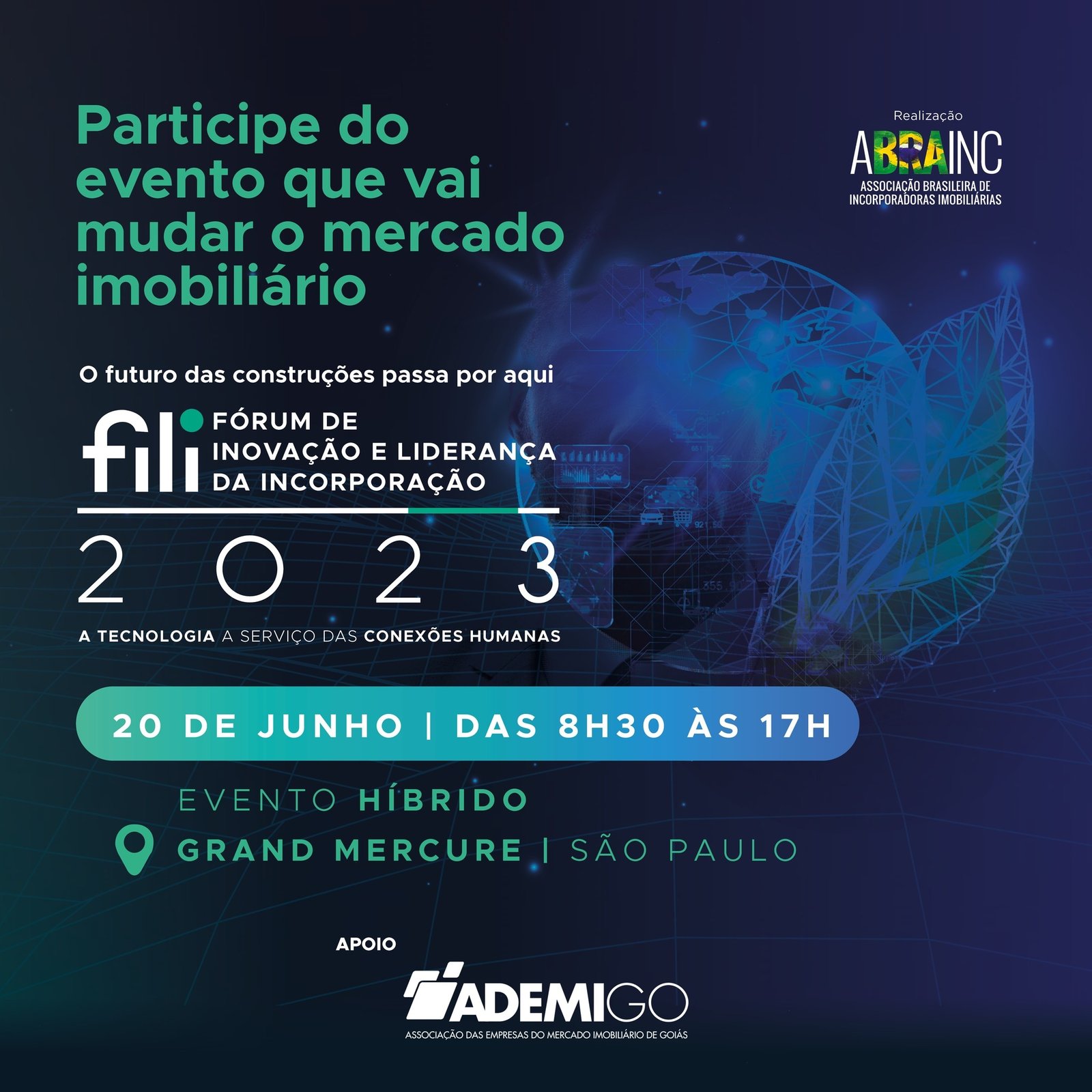 O apoio institucional da Ademi-GO ao evento permitirá ao associado um desconto de 20% na inscrição. O Fórum será realizado de forma híbrida, das 8h30 às 17 horas, no Grand Mercure, Rua Olimpíadas 205, Vila Olímpia, em São Paulo.