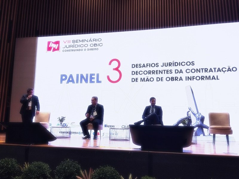 O presidente da Ademi-GO, Felipe Melazzo, mediou o painel ‘Os desafios jurídicos decorrentes da contratação de mão de obra informal’, que teve como palestrante o juiz do trabalho, Rodrigo Dias da Fonseca, e o juiz do TRT 18ª Região, Cleber Martins Sales, como debatedor. “Temos visto a informalidade cada vez mais atuante no mercado de trabalho e as novas modalidades de contratação que surgiram foram confundidas como algo ilegal. Então, precisamos avaliar e encontrar segurança jurídica para separar o que é informal, o que é alternativo legal fora da CLT, como é o caso de contratação de Pessoa Jurídica (PJ)”, observou Melazzo.