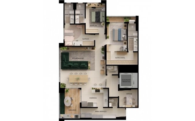 Privacidade, funcionalidade e localização estratégica para receber clientes ou fazer reuniões sem contato com o restante do apartamento.