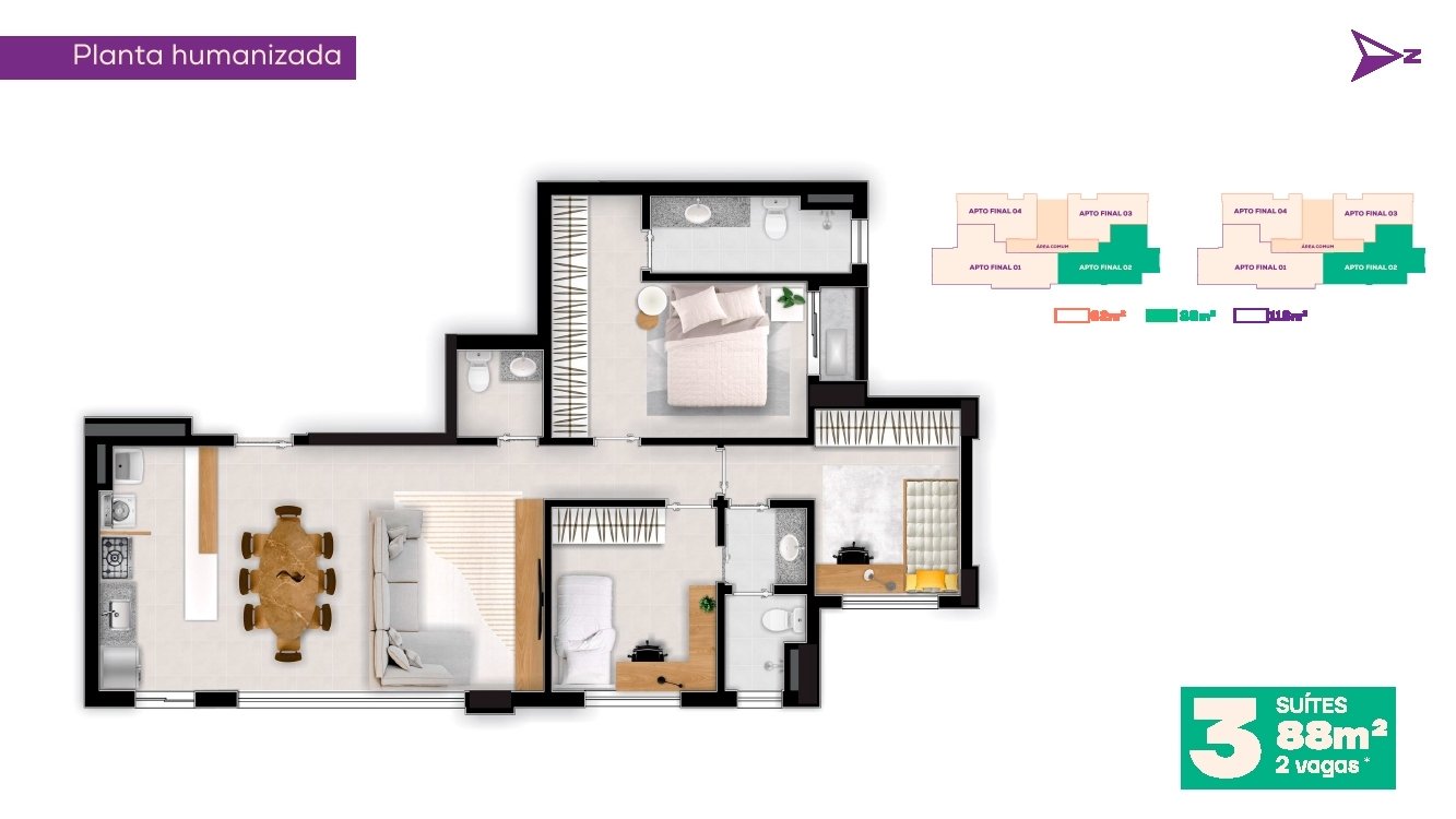 O Bliss Enjoy Life seduz pela versatilidade, conforto, moderno sistema de segurança e, é claro, inovação, charme e beleza de um projeto arquitetônico que agrega fachada imponente, vistas maravilhosas, espaço verde, lazer e apartamentos encantadores. Três plantas similares em essência, mas cada uma com sua própria personalidade, criadas para atender ao seu estilo de vida.