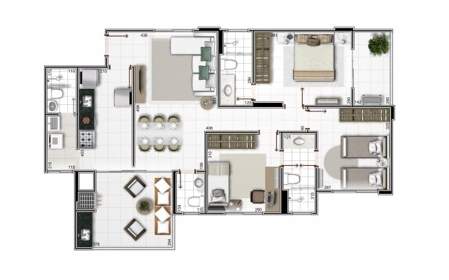 Eldorado. São 4 edifícios que totalizam 320 apartamentos e contam com a área de
